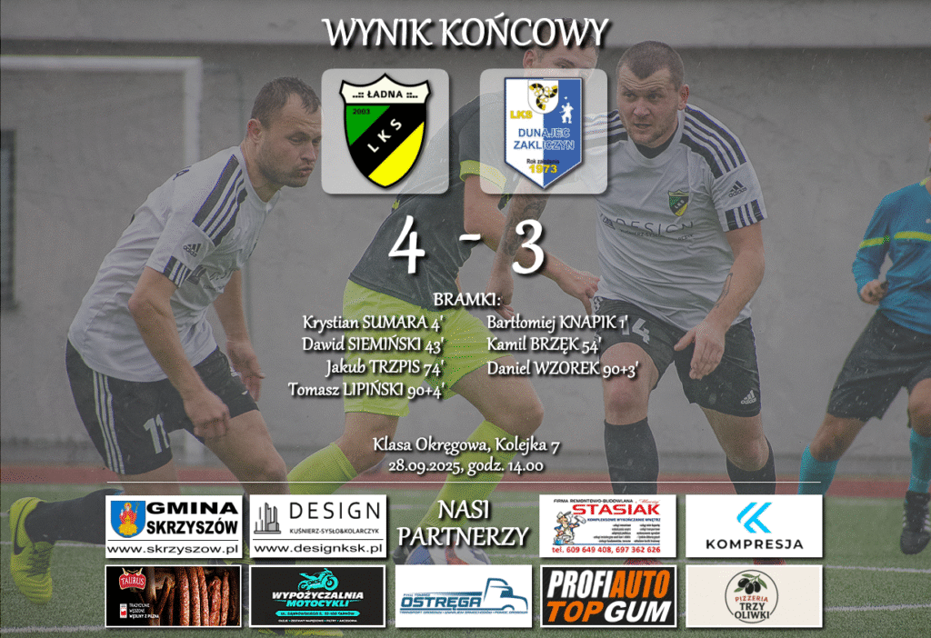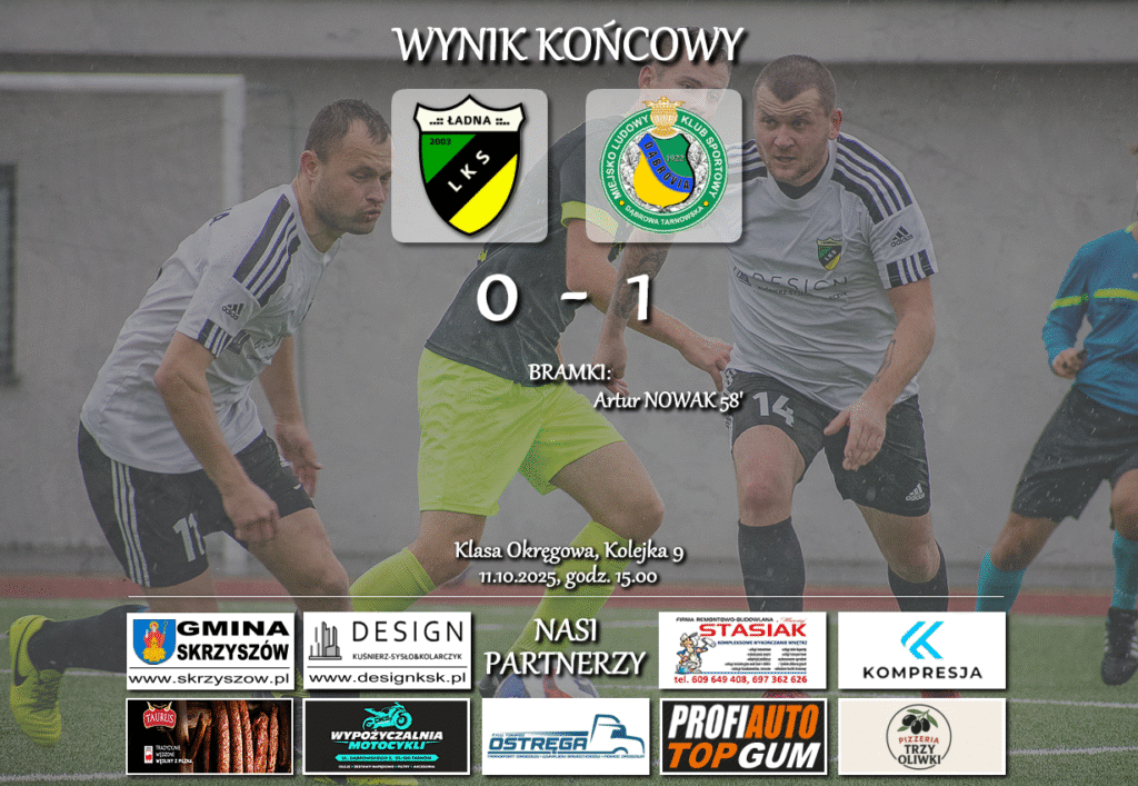 Mecz na szczycie tarnowskiej Okręgówki pomiędzy LKS Ładna a Dąbrovią Dąbrowa Tarnowska w pełni zasłużył na miano hitu kolejki i dostarczył ogromnych emocji wszystkim zgromadzonym kibicom. Mimo że wynik końcowy to zaledwie jeden gol, spotkanie trzymało w napięciu do ostatnich sekund i nie zawiodło licznie przybyłych fanów piłki nożnej. Obie drużyny zaprezentowały wyrównany, bardzo wysoki poziom gry, pokazując solidność w obronie….