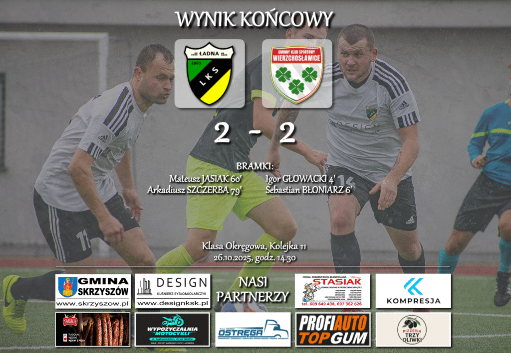 Za piłkarzami z Ładnej kolejne ligowe spotkanie, które przyniosło emocje i ważne doświadczenia. Tym razem nasi zawodnicy zremisowali z drużyną GKS-u Wierzchosławice/Gosławice, dzieląc się punktami i zapisując na swoim koncie jedno oczko, które może okazać się cenne w dalszej części rozgrywek. Niedzielne starcie rozpoczęło się jednak bardzo niekorzystnie dla zawodników z Ładnej – już po zaledwie 6 minutach gry goście prowadzili dwoma bramkami. Najpierw, po dynamicznej i skutecznej kontrze, gola zdobył…