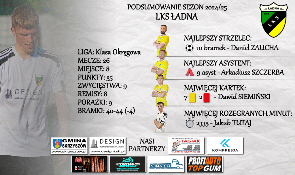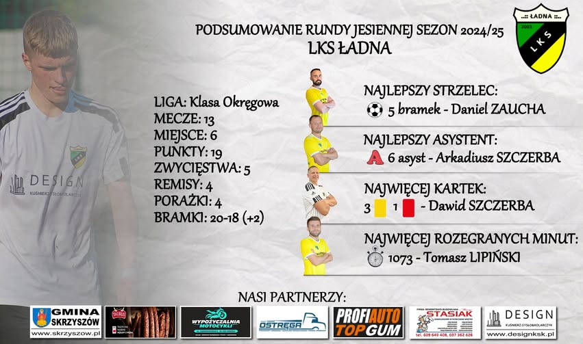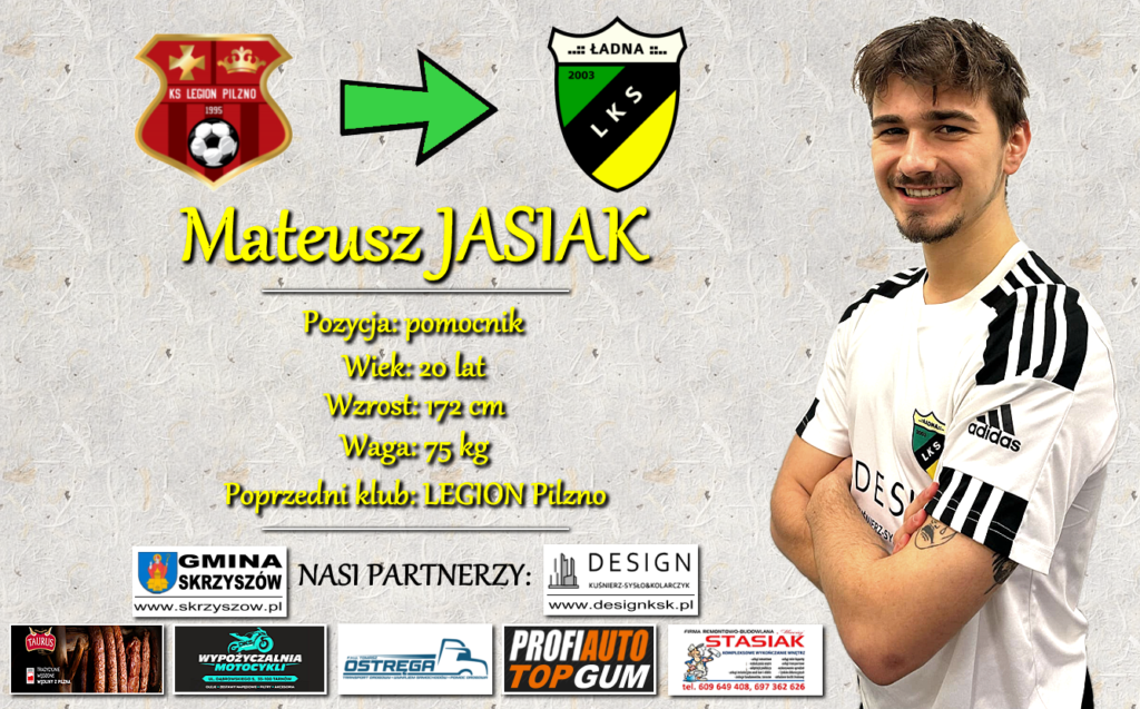 Do drużyny LKS Ładna dołączył nowy zawodnik, Mateusz Jasiak, który z pewnością stanie się znaczącym wzmocnieniem naszego zespołu. Jego wszechstronność, wyjątkowe zaangażowanie oraz bogate doświadczenie, pomimo młodego wieku, zdobywane przez lata w różnych klubach piłkarskich są niezwykle cenne…