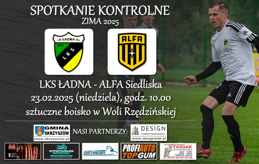 Już w najbliższą niedzielę drużyna z Ładnej rozegra kolejne spotkanie kontrolne. Tym razem nasi zawodnicy zmierzą się z ekipą Alfy z Siedlisk, co z pewnością dostarczy kibicom wielu sportowych wrażeń. Alfa na co dzień występuje w rozgrywkach tarnowskiej B-klasy…