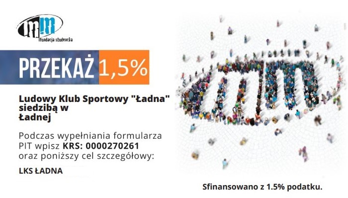 Nadszedł okres corocznego rozliczenia podatkowego, w związku z czym serdecznie zapraszamy Państwa do przekazania 1,5% podatku lokalnej organizacji pożytku publicznego. Jedną z nich jest nasz klub – LKS Ładna (KRS: 0000078233, cel szczegółowy: LKS Ładna).…
