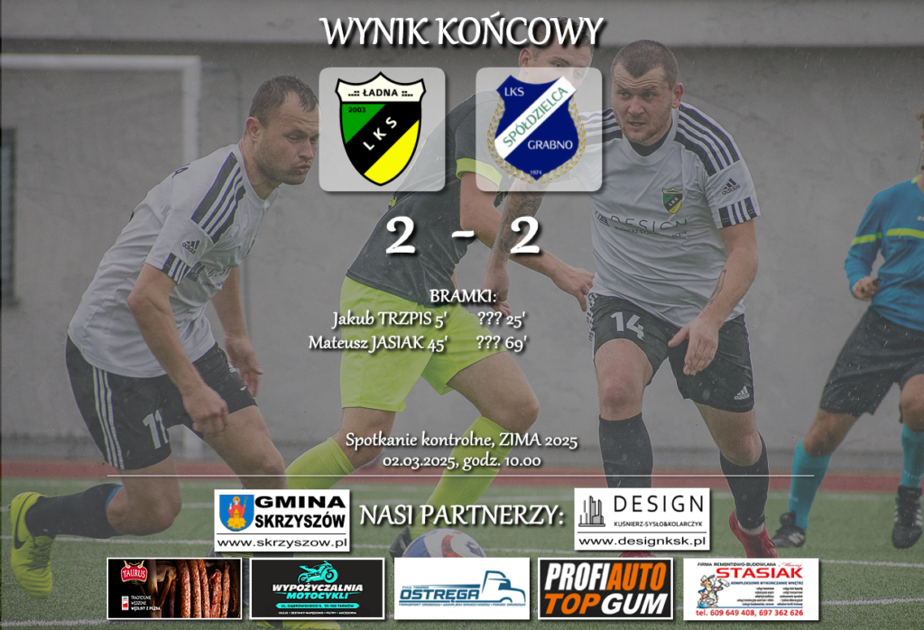W ostatnim meczu kontrolnym przed wznowieniem wiosennej rywalizacji zespół z Ładnej zremisował z drużyną Spółdzielcy Grabno 2:2. Spotkanie rozpoczęło się znakomicie dla naszej ekipy, która już w 5. minucie objęła prowadzenie. Autorem bramki był Jakub Trzpis, który skutecznie wykończył…