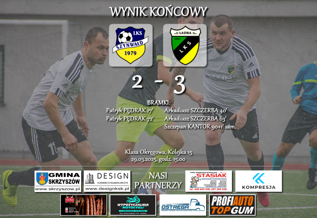 Zespół Ładnej zdobył niezwykle cenne trzy punkty, pokonując w emocjonujących derbach drużynę LKS Szynwałd wynikiem 3:2. Sobotni mecz nie rozpoczął się zbyt pomyślnie dla naszej ekipy, ponieważ już w 17. minucie gospodarze wyszli na prowadzenie. Strzelcem pierwszego gola był Patryk Pędrak…
