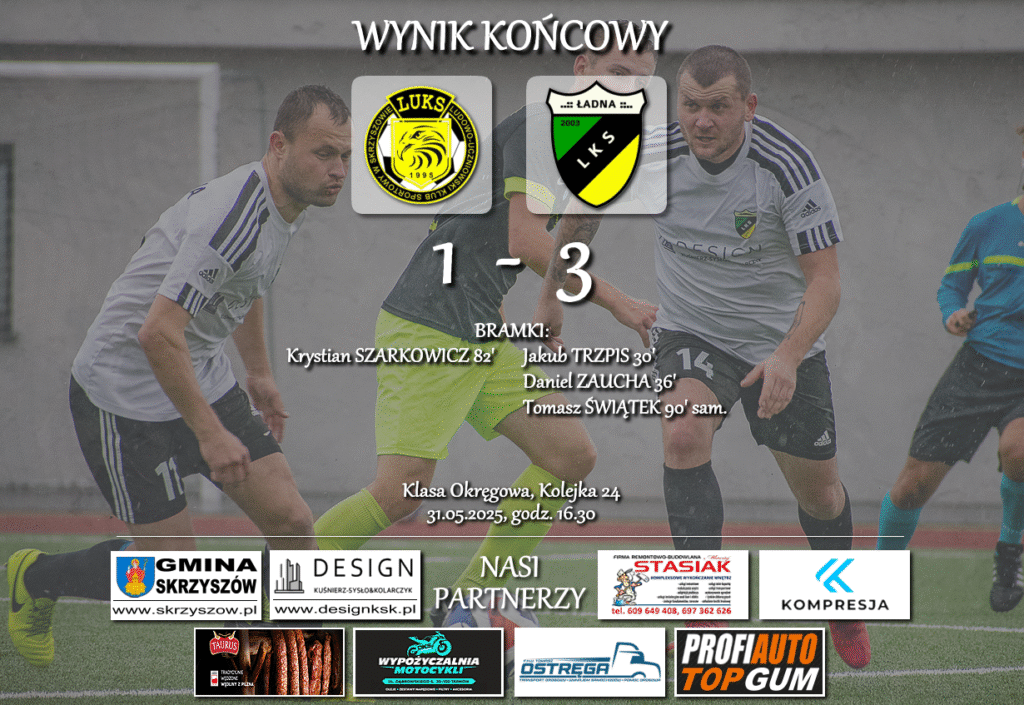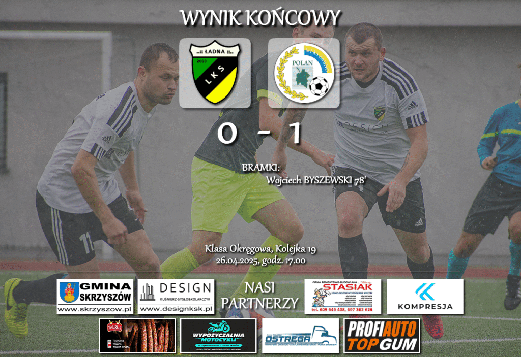 W kolejnym meczu ligowym drużyna Ładnej musiała uznać wyższość zespołu Polanu Żabno, ulegając na własnym stadionie wynikiem 0:1. Jedyna, a zarazem kluczowa bramka tego zaciętego spotkania padła w 78. minucie, kiedy Wojciech Byszewski pewnie wykorzystał rzut karny, przesądzając o losach rywalizacji i zapewniając…
