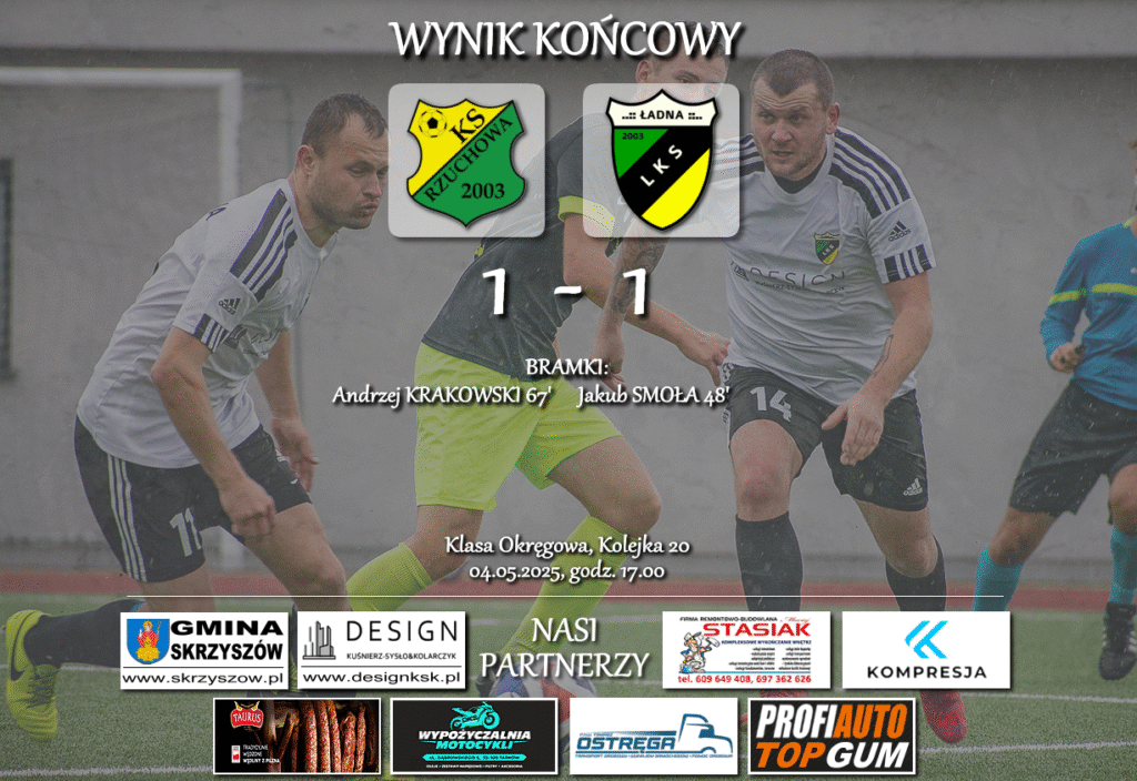 W meczu 20. kolejki tarnowskiej Klasy Okręgowej drużyna naszego LKS-u zremisowała na wyjeździe z zespołem Rzuchowej wynikiem 1:1. Spotkanie to przyniosło emocje dopiero w drugiej połowie, gdy oba zespoły zdołały wpisać się na listę strzelców. Tuż po przerwie Ładna objęła prowadzenie dzięki Jakubowi Smole, który pewnym…