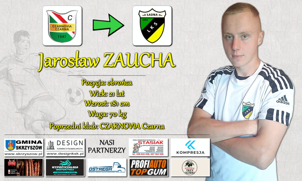 Nową twarzą w naszym zespole został 21-letni Jarosław Zaucha, który dołącza do nas z wielkim chęcią pokazania swoich umiejętności. Jarek to przede wszystkim naturalny boczny defensor, charakteryzujący się solidną grą na tej pozycji, jednak potrafi również skutecznie występować na środku obrony, co czyni go bardzo wszechstronnym zawodnikiem. Nasz nowy piłkarz to wychowanek klubu Wolania…