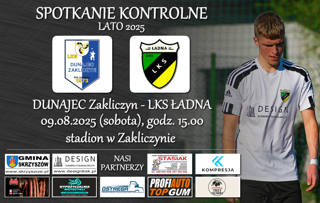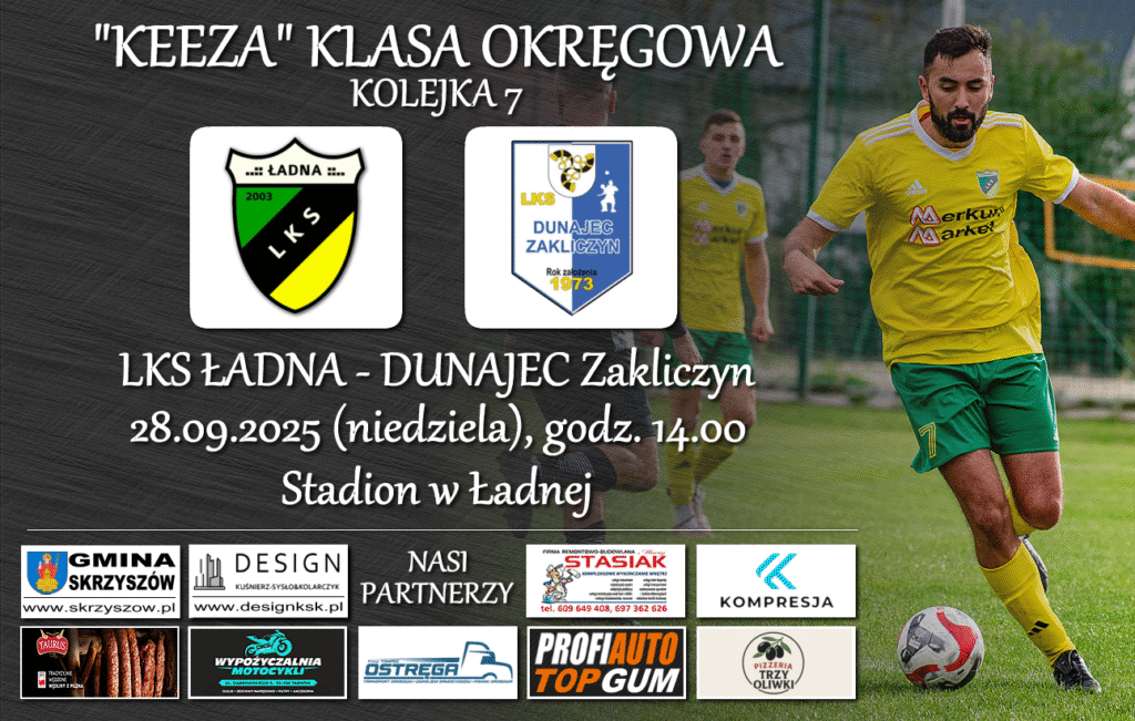 Nadchodząca niedziela na stadionie w Ładnej zapowiada się naprawdę niezwykle emocjonująco i pełna sportowych wrażeń. Nasza drużyna stanie oko w oko z wymagającym i mocnym przeciwnikiem – zespołem Dunajca Zakliczyn. Po niedawnym spadku z V ligi, Dunajec pokazuje, że jest doskonale przygotowany by walczyć o jak najwyższe cele i być może szybki powrót na wyższy poziom rozgrywek piłkarskich. To uznana i szanowana marka…