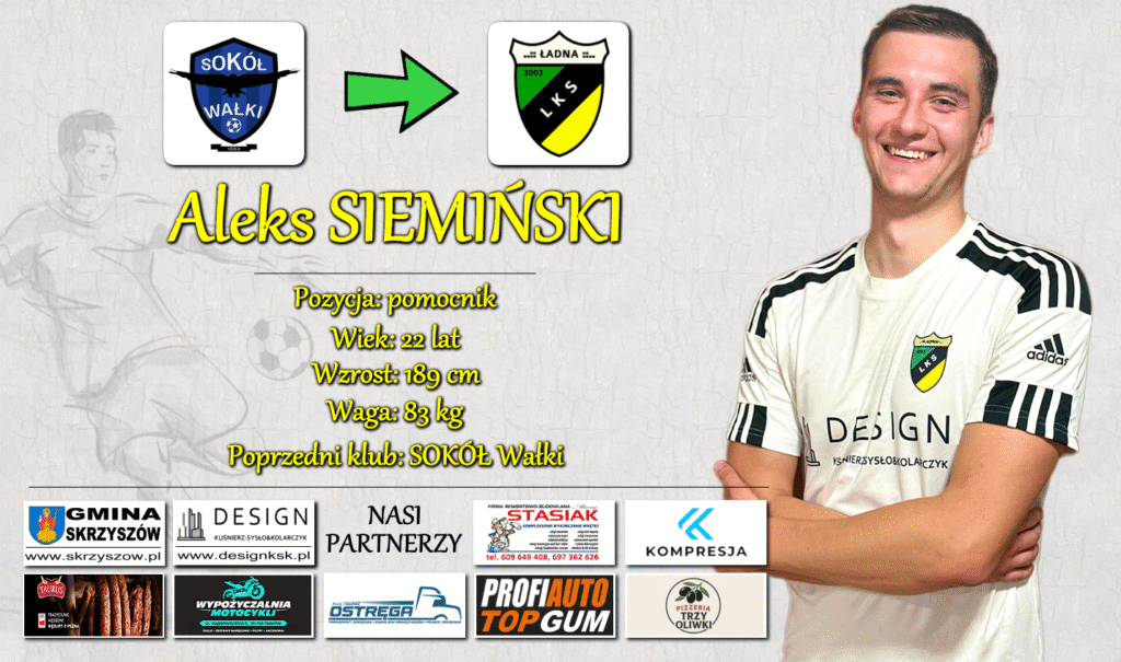 Kolejnym wzmocnieniem naszego zespołu z Ładnej został 22-letni Aleks Siemiński. Aleks jest wychowankiem klubu z Woli Rzędzińskiej, gdzie stawiał swoje pierwsze piłkarskie kroki i zdobywał doświadczenie. Przez ostatnie trzy sezony reprezentował barwy Sokoła Wałki, rozgrywając łącznie…