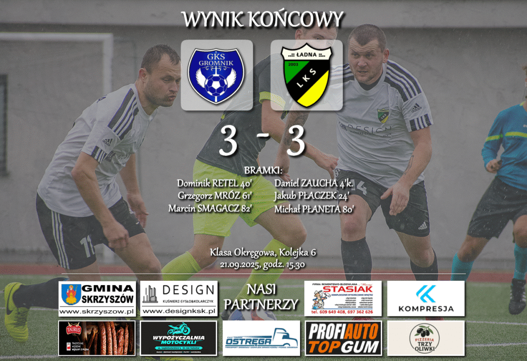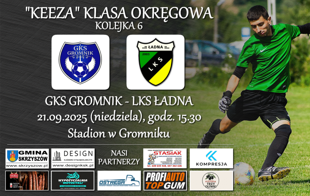 Przed rozpędzoną drużyną z Ładnej stoi kolejny ważny ligowy sprawdzian, który będzie wymagał pełnego zaangażowania. W niedzielę, 21 września 2025 roku, o godzinie 15:30, nasz LKS uda się na wyjazd do Gromnika, gdzie na boisku miejscowego GKS-u powalczy o kolejne punkty w tabeli. Najbliższy przeciwnik to zespół, który niedawno spadł z V ligi i rozpoczął sezon od mocnego falstartu…