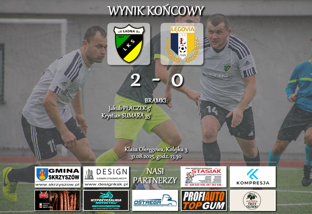 Piłkarze z Ładnej odnieśli kolejne, bardzo ważne ligowe zwycięstwo, które umacnia ich pozycję w tabeli. Tym razem zawodnicy naszego LKS-u pokonali na własnym boisku spadkowicza z V ligi – ekipę Łęgovię Łęg Tarnowski, wygrywając 2:0. Obie bramki padły już w pierwszej połowie spotkania, choć okazje strzeleckie pojawiały się również w drugiej części meczu, utrzymując napięcie do samego końca…